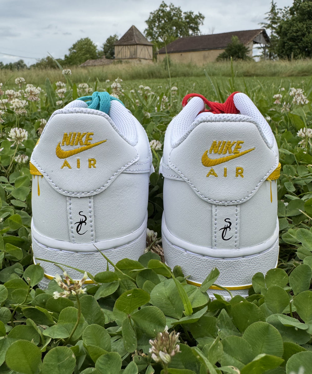 Winnie pintado a mano con un swoosh amarillo goteando al estilo miel. Un par tierno, colorido y único.